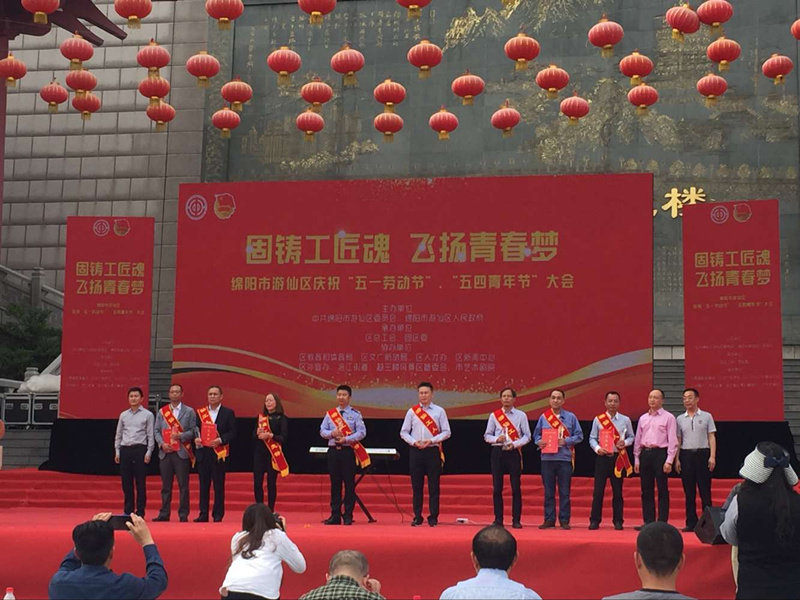 4月27日下午3點(diǎn),綿陽(yáng)市游仙區(qū)慶祝“五一勞動(dòng)節(jié)”、“五四青年節(jié)”大會(huì)在越王樓廣場(chǎng)舉行。我公司新材料研發(fā)部部長(zhǎng)黃杰榮獲綿陽(yáng)市游仙區(qū)2017年“工人先鋒”稱(chēng)號(hào),并在本次大會(huì)上受到表彰。